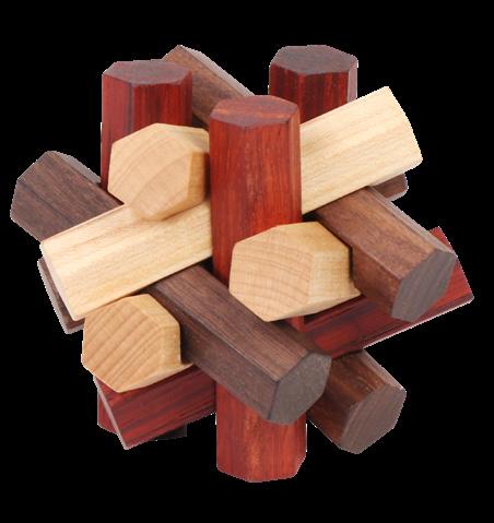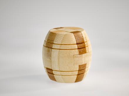 Puzzles of this type were mainly made in Germany, but by the late 1930s the market had been largely captured by Japanese manufacturers. Yamanaka Kumiki Works Co. being one of them. Since then, this particular puzzle system can be found in several geometrically shaped puzzles, such as a sphere, a cube, a barrel, etc.... Japanese puzzles of this kind are called, you’ll never guess, “Kumiki” and are believed to be related to the traditional construction of wooden buildings where no nails or glue were used.