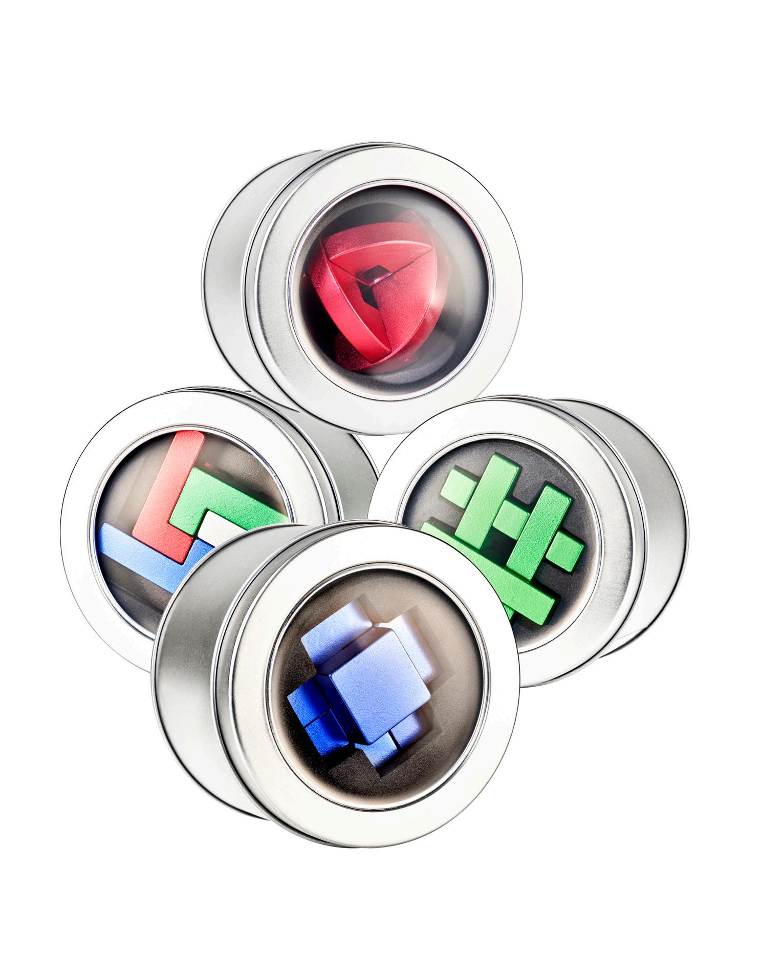 473443 - EAN 5425004734433 quad L metal puzzle in a can ★★★ [4 colours] tin can diam. 90 x 60 mm