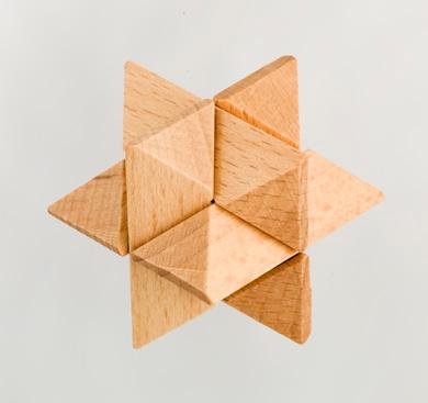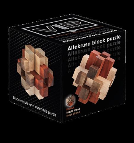 A classic Altekruse puzzle consists of 12 identical parts. This can only be dismantled by sliding a complete section to one side before any pieces can be removed. Puzzle designer Stewart Coffin discovered 14, 36 and 38 piece variations. This type of puzzles is unusual because all parts are identical.
