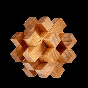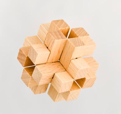 The term is attributed to the finished shape of many of these puzzles, resembling a seed burr. The term “burr puzzle” is officially mentioned for the first time in a 1928 book by Edwin Wyatt, but the text implies that it was commonly used before. Records of such puzzles can be found in German catalogues from the late 18th century and early 19th century. Also, an engraved image in an encyclopaedia from 1698. But there are claims of the burr being a Chinese invention, like other classic puzzles such as the Tangram. The puzzle known as “The Chinese Cross” is in fact the most well-known and presumably the oldest of burr puzzles. That makes the burr puzzle over 1000 years old.