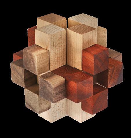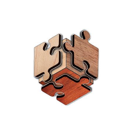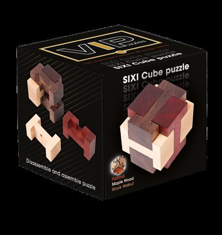 Created by Vaclav Obsivac (nickname Vinco) from the Kingdom of Wallachia in the Czech Republic. Vinco was born in 1962 and had a natural interest in symmetrical geometric shapes made from beautiful types of wood. His interest in puzzle making began in 1999, thanks to a world puzzle championship in Brno, Czech Republic. Inspired by the work of Stewart T. Coffin, Tom Lensch, Philippe Dubois, Pelikan Puzzles and others, Vinco designs and produces various types of puzzles, including packing puzzles and interlocking puzzles. However, most of his puzzles work on the basis of coordinated movements. This SIXI Cube puzzle is one of his simpler interlocking creations, allowing you to become acquainted with his designs. But beware, we included some science as a challenge.