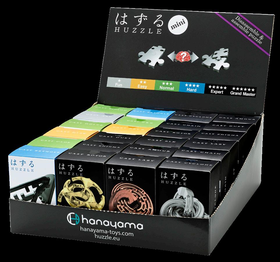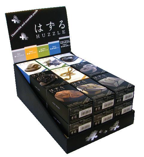Huzzle cardboard display with 27 Cast Puzzles: 6x 6stars, 9x 5stars, 6x 4stars, 3x 3stars, 2x 2stars, 1x 1star puzzles