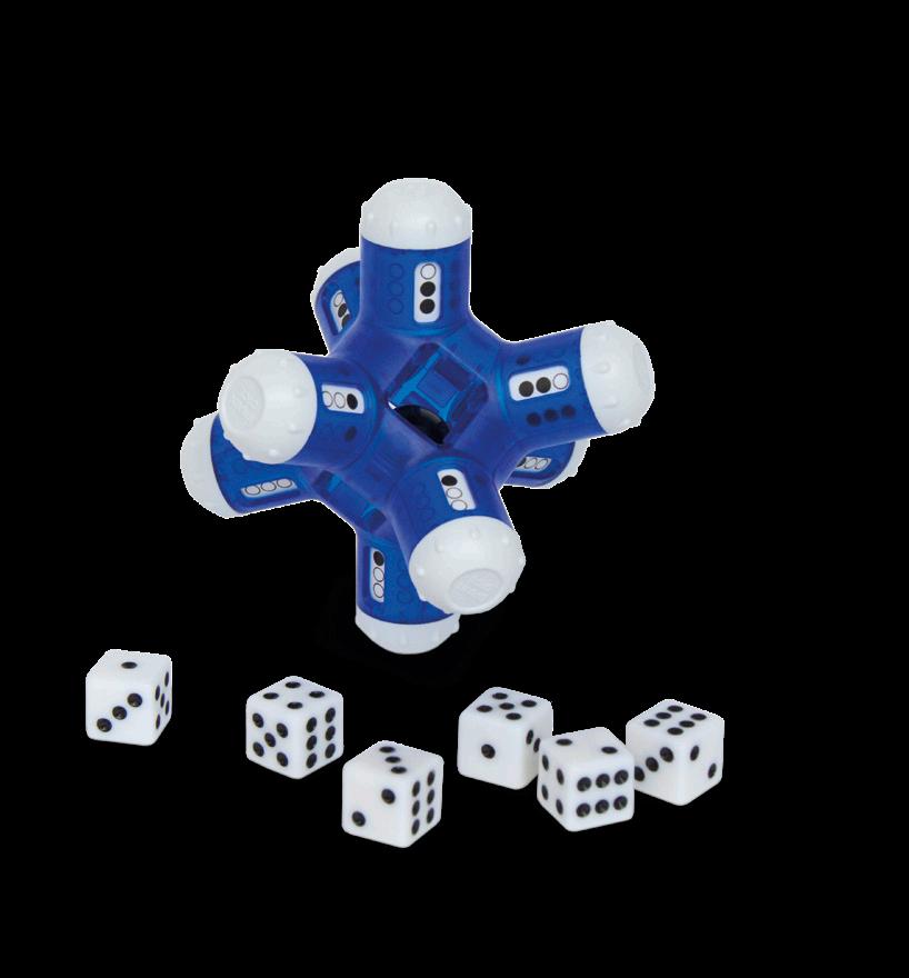 Throw the dice, put them at random in the holders and turn the knobs until the dots equal the number on the die. On all six sides! Braindice is surprisingly always solvable.