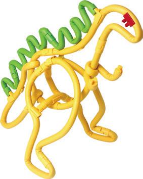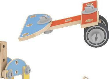 Incluye piezas para construir máquinas móviles como un timbre, una grúa, un zoótropo o una rana escaladora