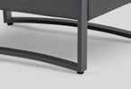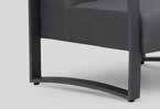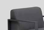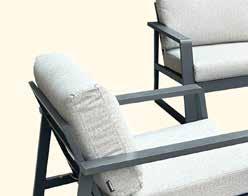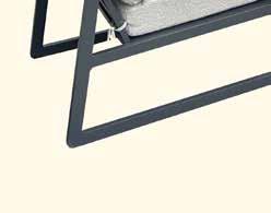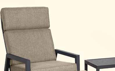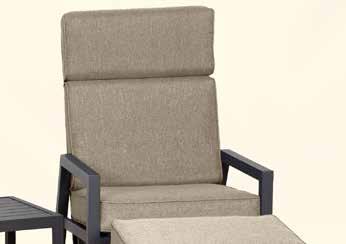 Ryggen reguleres av et lett tilgjengelig og diskret håndtak. Fem deler, to reclinere, to fothvilere og ett bord. Leveres med grå pulverlakkert aluminiumsramme.