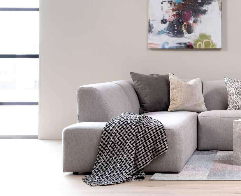 Leveres i deler som enkelt festes sammen ved hjelp av fester på undersiden av sofaen. Roxy er modulbasert, heltrukket med tekstil og kan brukes hver for seg. Bygg slik du ønsker.