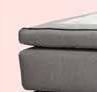 KS 3000 har dobbelt fjærlag i rammemadrass - pocket + mini-bonnell. Den kantstabile hoved-madrassen har latex-stopning og soneinndelte pocketfjærer, mens overmadrassen har climalatex med sommer- og vinterside. Gavl kan kjøpes separat.