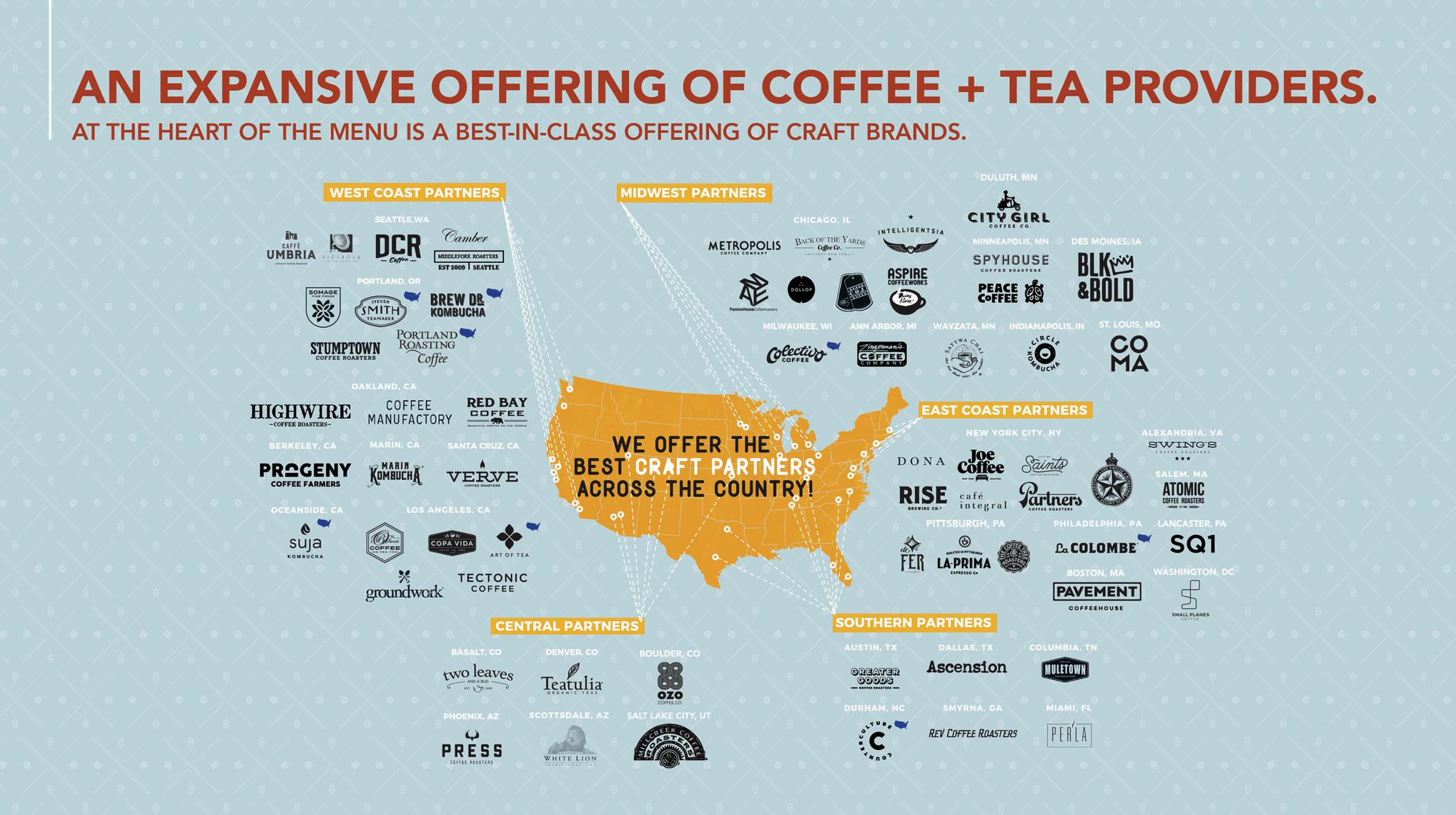 Our multi-functional coffee bars are meticulously curated for our guests and clients, leveraging a variety of programs and partnerships to meet consumer demands and preferences, no matter the time of day.