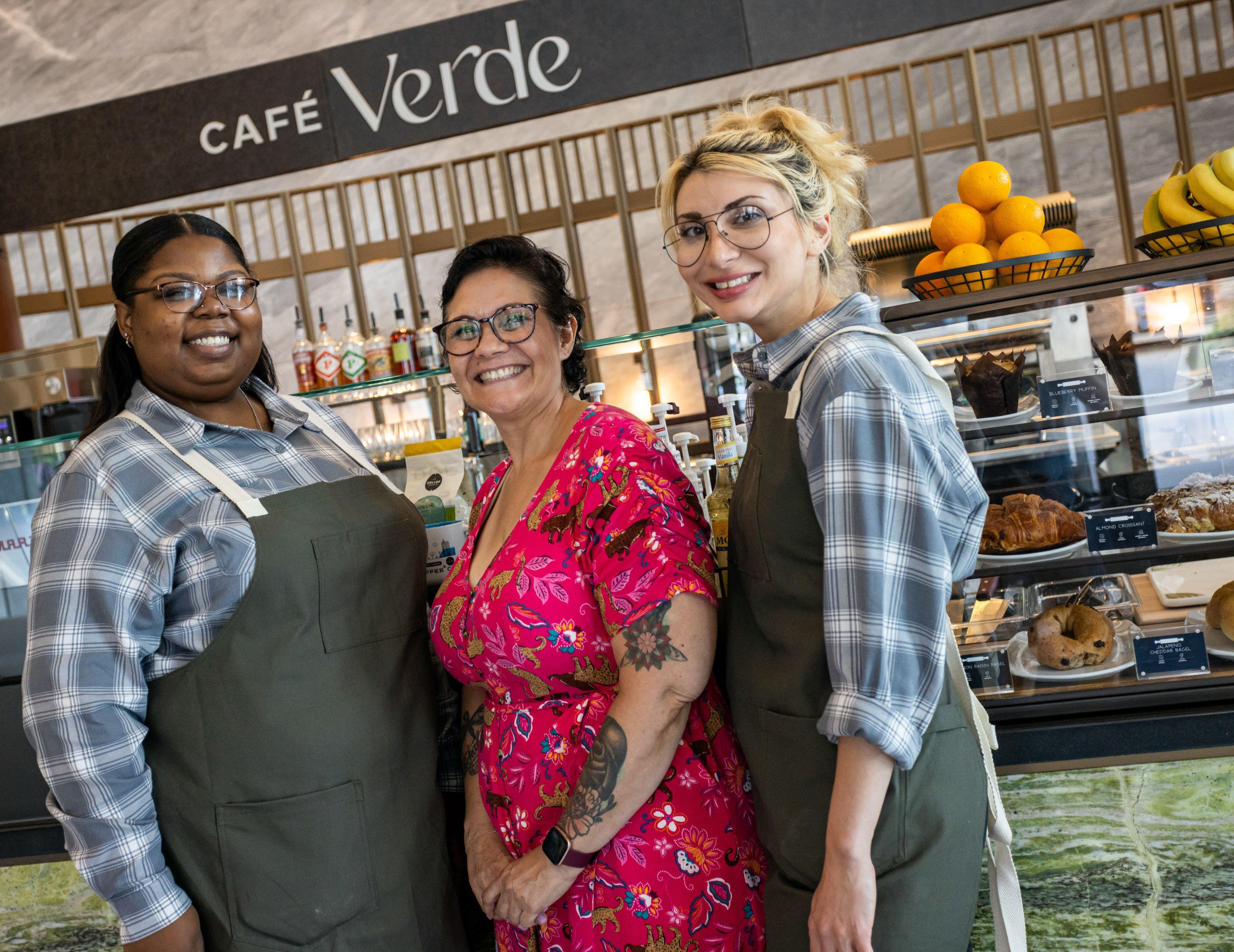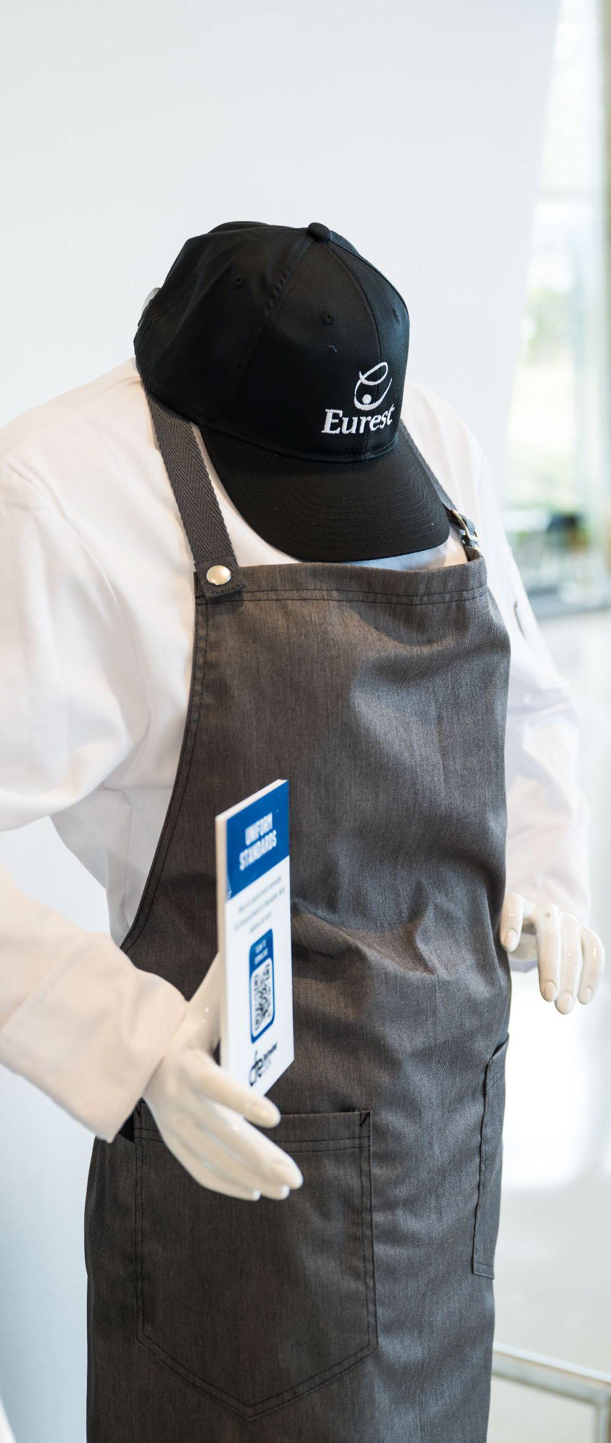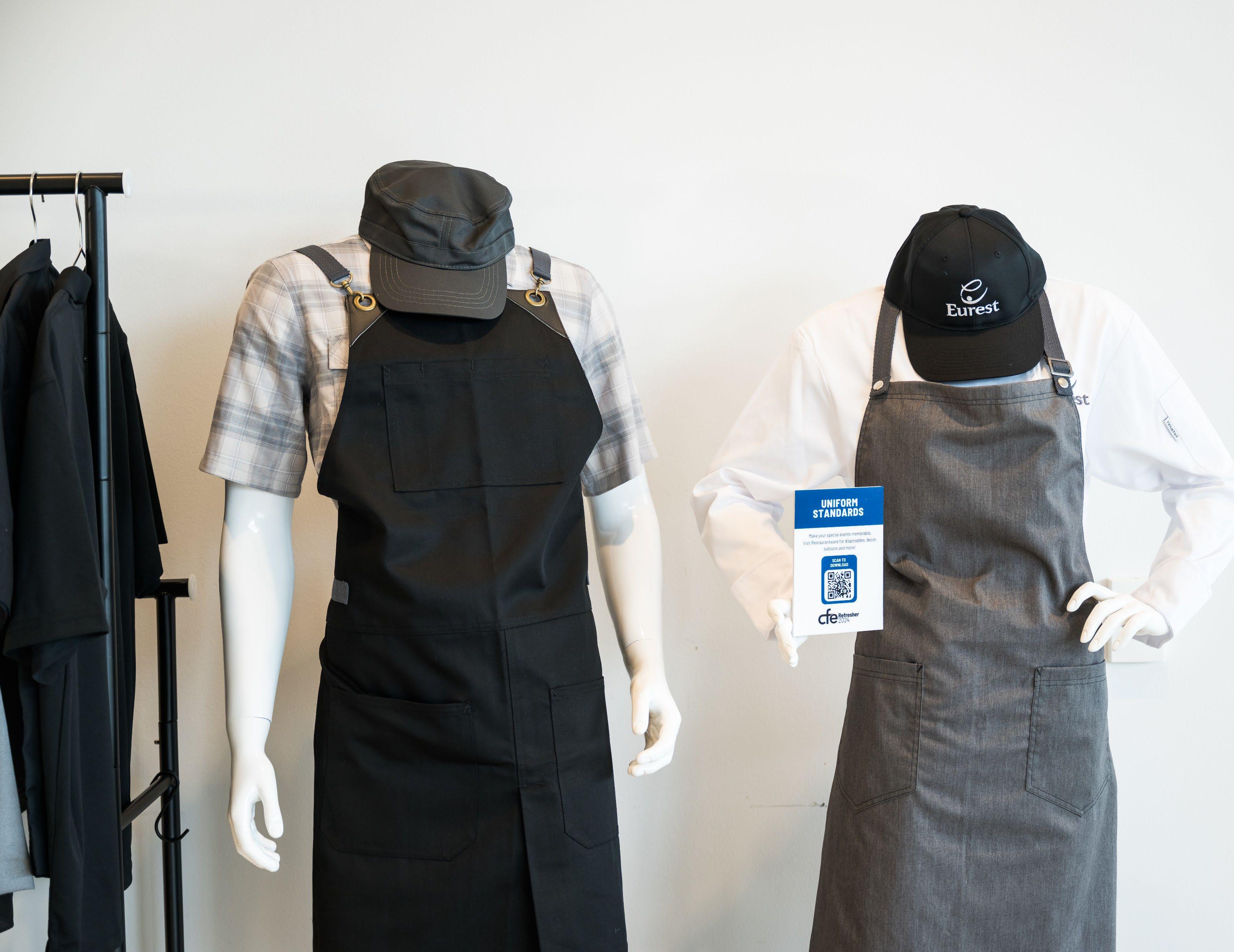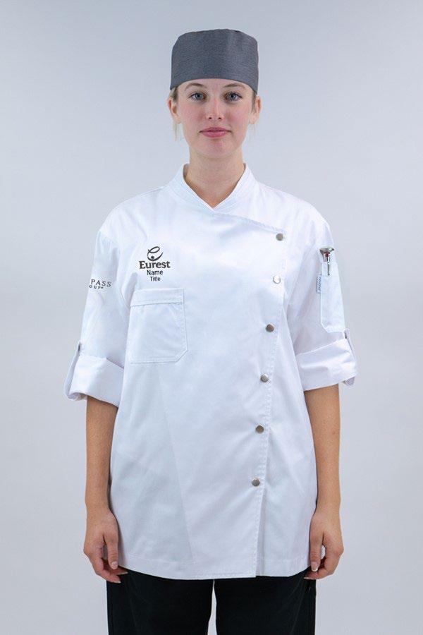 Eurest, in collaboration with our Women Business Enterprise (WBE) and Women Owned Small Business (WOSB) certified uniform supplier, Newchef, brings a fresh look and feel to our uniforms. Our uniform designs have a modernized look, matching trends on the street including jean-like material for some designs.