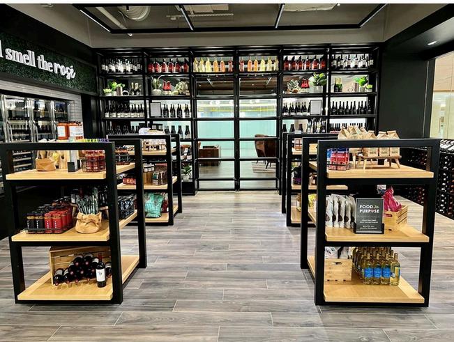This wine bar market is a one-of-a-kind, multi-building office campus in the middle of a metroplex that provides fine wine, craft beer, fresh eats, and gifts
