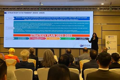 The Annual General Meeting of the European Chamber of Commerce and Industry in Lao PDR (or EuroCham Laos) took place in the evening, reuniting its members to approve the management account and discuss the future of the Chamber. Mrs Thiane Khamvongsa, who presented the activity reports and results for 2023 and outlined the Chamber’s strategy, budget and action plan for 2024-2025, also announced that this was her third and last year as Executive Director of EuroCham Laos.
