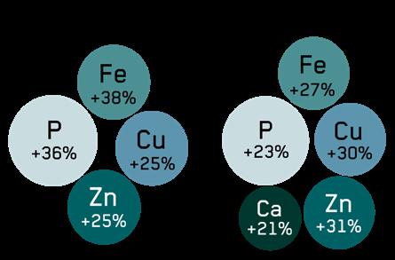 Increase in minerals in the blood of sows and piglets of up to 38% after feeding fermented rapeseed meal to the sows (n=12).