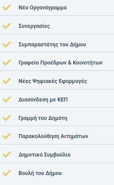 ΣΤΌΧΌΣ ΜΑΣ: Ένας Δήμος Οργανωτικά Σύγχρονος, Διοικητικά Αποτελεσματικός, Διαχειριστικά Αποδοτικός, Εποπτικά Ελεγκτικός και Συμβουλευτικός ώστε να λύνει τα προβλήματα των Δημοτών – Πολιτών. Κέντρο της πολιτικής μας είναι η πλήρης διαφάνεια σε όλες τις δράσεις του Δήμου με απολογισμό εξαμήνου και υποχρεωτικά ετήσιο.
