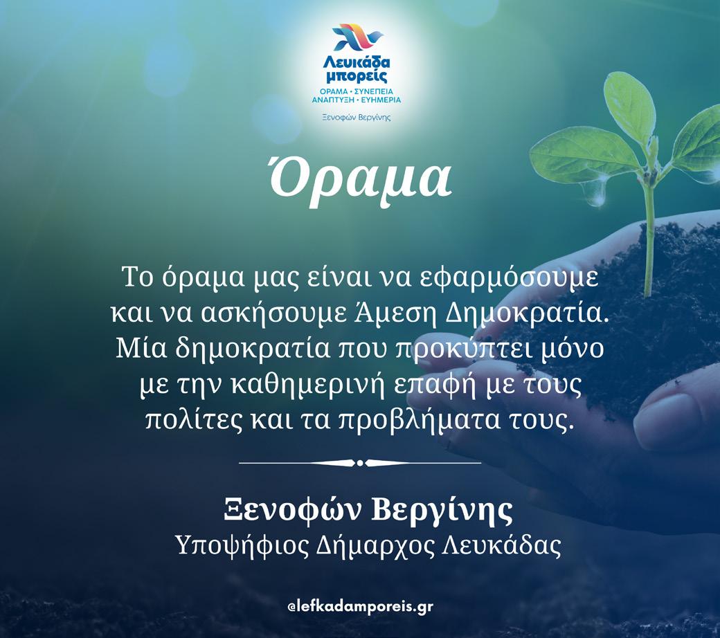 Όραμα δικό μου και των συνεργατών μου, που θα πορευτούμε μαζί, είναι η Λευκάδα
