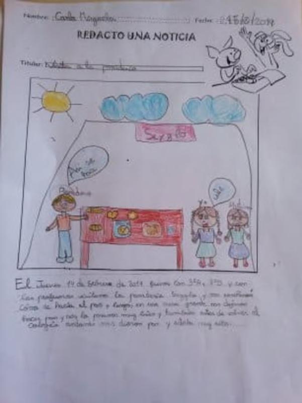Para este trabajo los alumnos siguieron un proceso de creación. Primero la profesora de 6ºA, Silvia, les repartió a los niños unas imágenes del cómic de Cristina Bueno : ``Cuando cierro los ojos recuerdo...´´ y , sin haberlo leído aún, las analizaron y a partir de ellas crearon noticias y... ¡Quedaron muy originales!