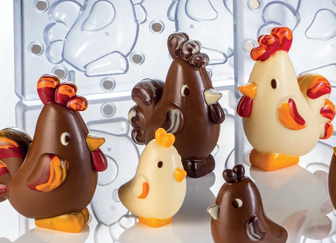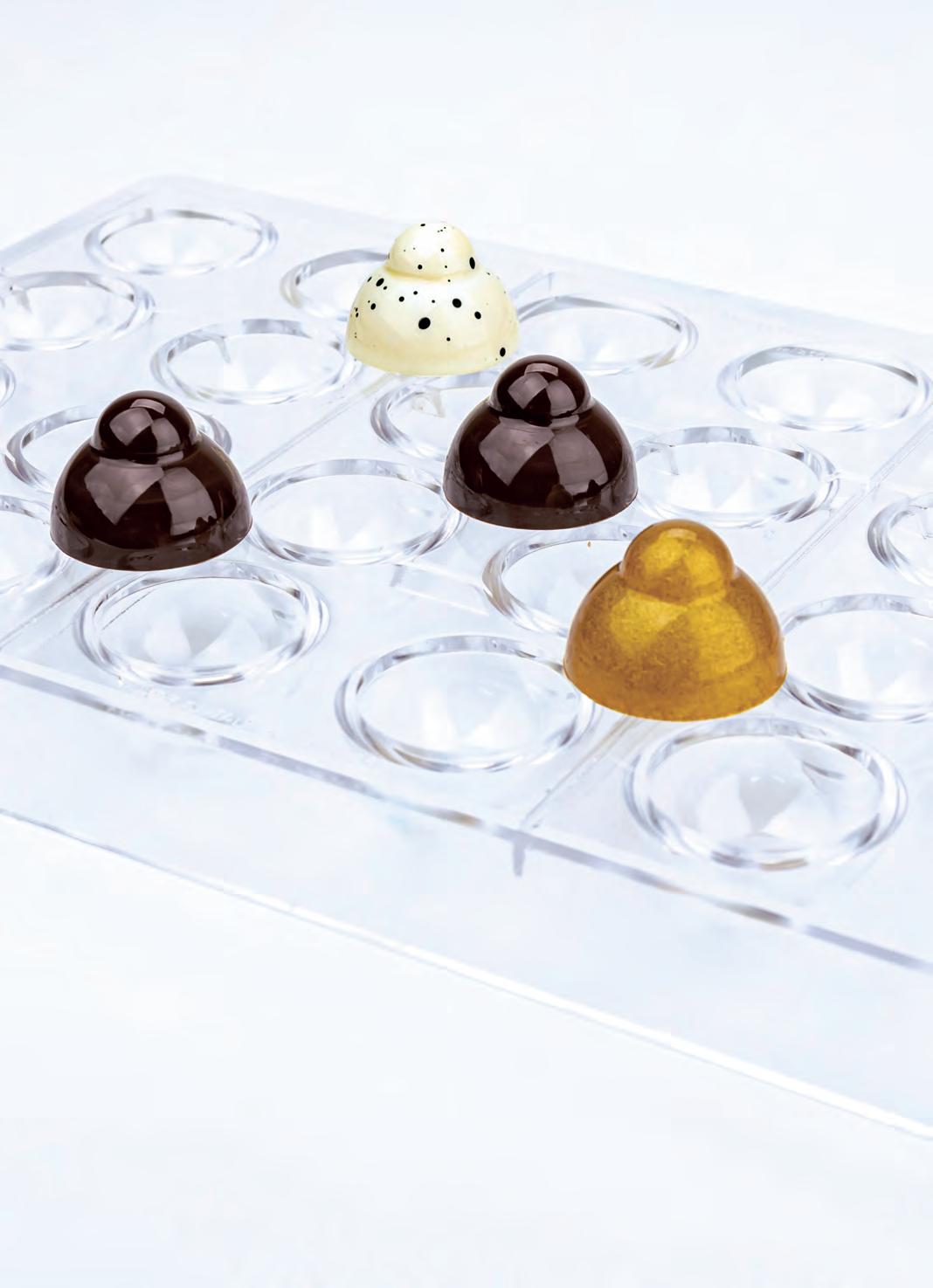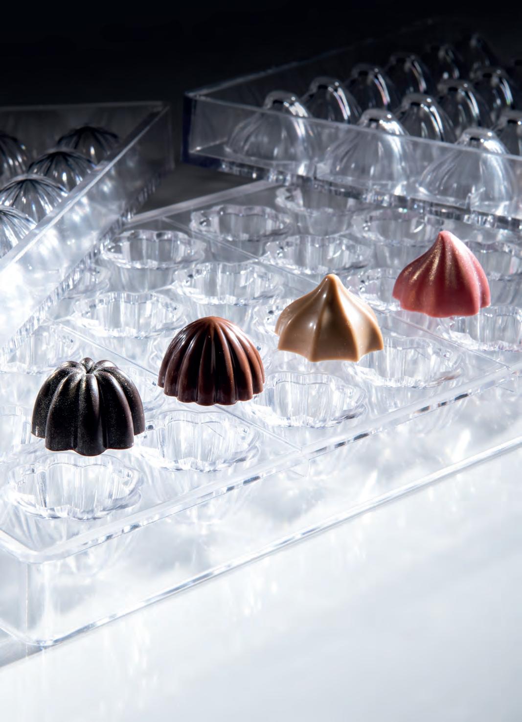 In questa sezione è raccolta un’ampia gamma di prodotti per il cioccolato: Supreme, linea di stampi professionali per praline, snack, tavolette e soggetti - Performance, la collezione di stampi dedicata alle macchine one shot e rotative - Termoformati, stampi per singoli soggetti o per la produzione di figure 3D come uova di Pasqua, sfere e alberi di Natale - Timbri, pettini e tappeti in silicone per realizzare bellissime decorazioni - e molto altro tutto da scoprire. Con questa gamma, Martellato offre ai pasticceri e ai cioccolatieri un assortimento completo di prodotti ideali per creare vetrine di grande impatto estetico, senza rinunciare alla qualità e al design made in Italy.