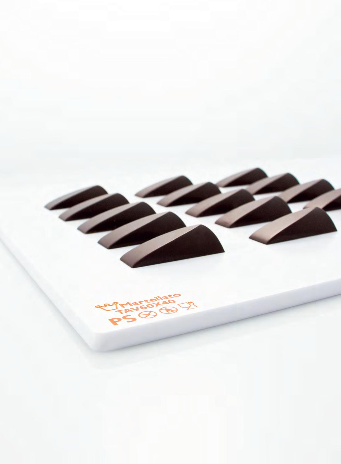 This section gathers a wide range of products for chocolate production: Supreme, a line of professional moulds for pralines, snacks, bars and subjectsPerformance, a collection of One-Shot and rotating machines moulds - Thermoformed moulds, for producing both single subjects and 3D figures such as Easter eggs, spheres and Christmas trees - Stamps, combs and silicone mats to creating beautiful decorations - and much more to be discovered. With this range, Martellato offers to pastry chefs and chocolatiers a complete selection of products with which realize great aesthetic impact showcases, without missing quality and made-in-Italy design.