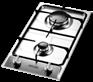 black tempered glass, 2 gas burners including mini Wok, cast iron pan supports, natural gas & LPG