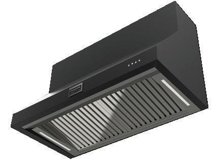 Soft-touch controls, LED lighting, Labyrinth stainless steel grease filters, Nominal power 550 W, Minimum air outlet Ø 200 mm, Air non-return valve (suction), Suction power up to 1453 m³/h, Sound power from 48 to 73 dBa, 2 Motors, 4 suction levels, Auto-off, Power cord and plug, Matte black