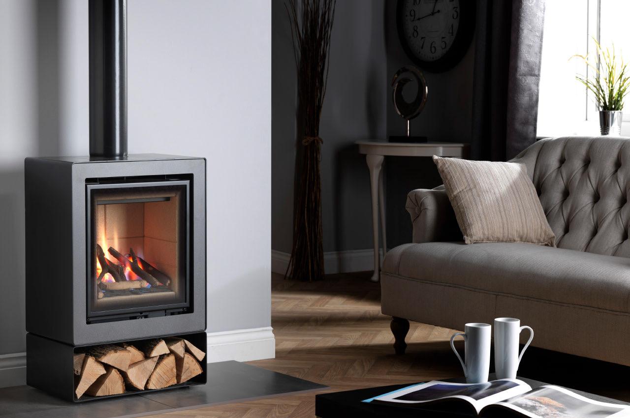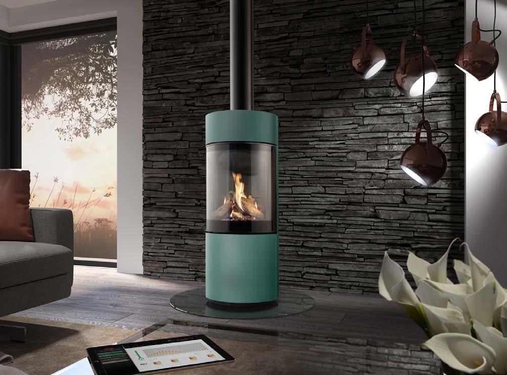 Passo is a sleek, cylindrical gas stove with a large, wraparound viewing window framing a gorgeous log fire bed. As well as an A energy rating and high efficiency, it is also available in five external colour finishes to compliment almost any décor.