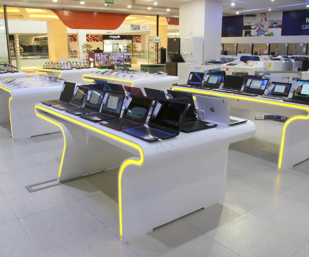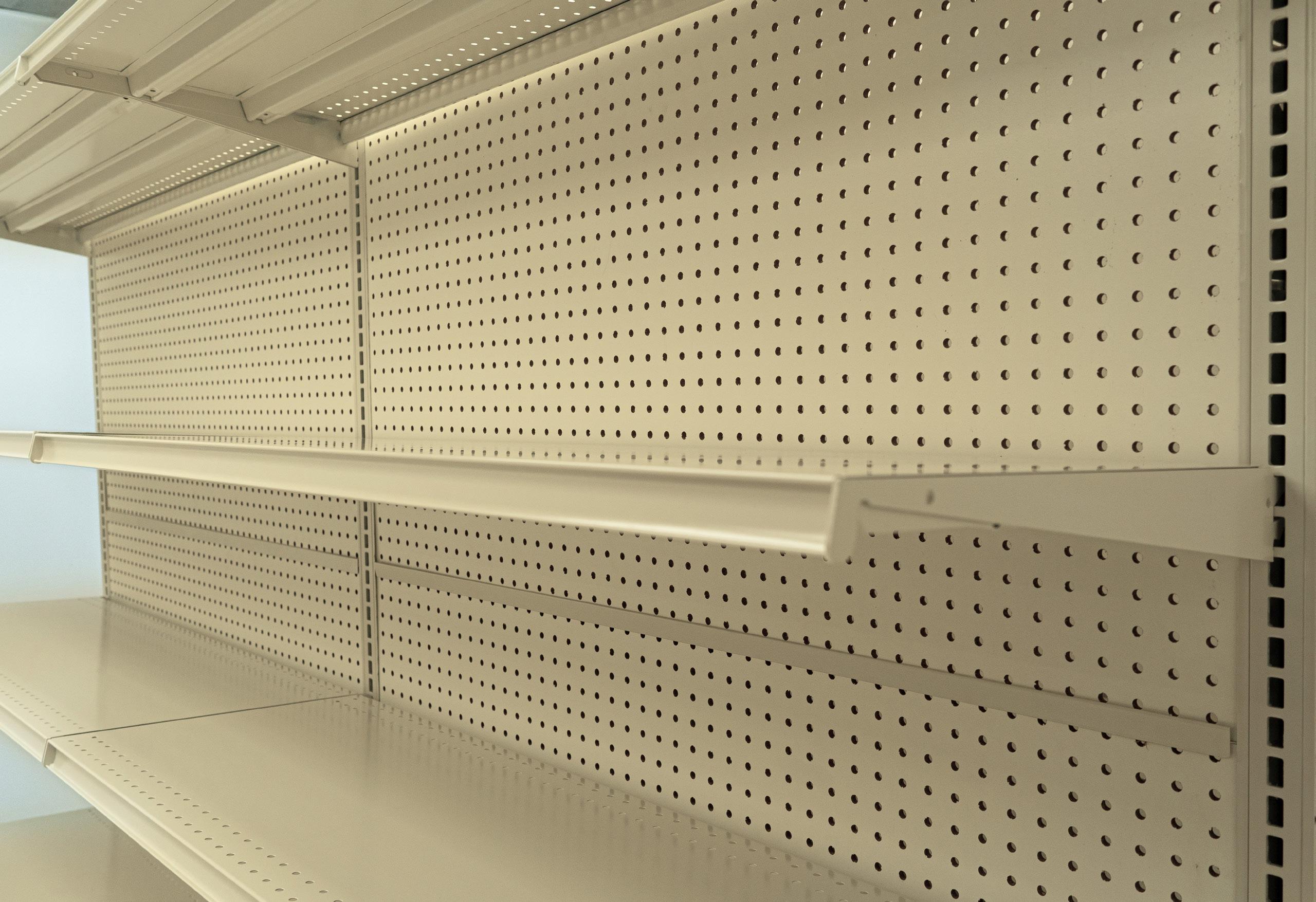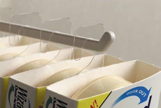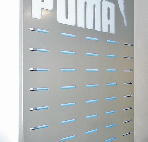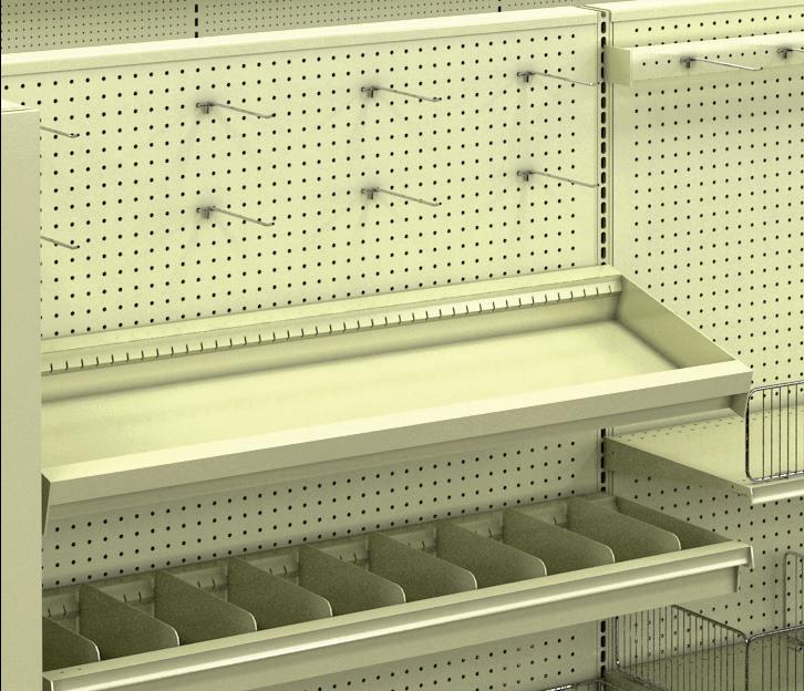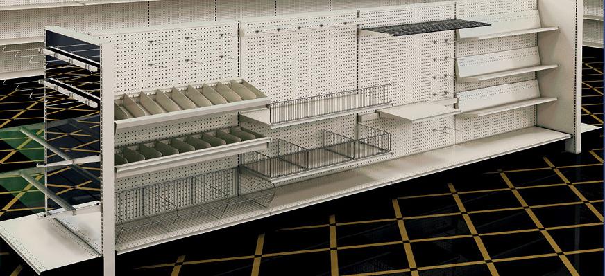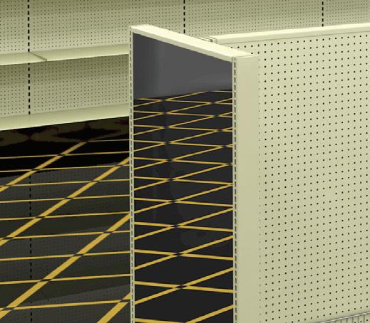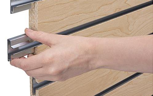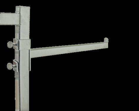 Tubo rectangular puede ser utilizado con los sistemas de rieles, slatwall o rejillas.