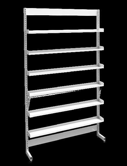 Exhibidor cromado 5 niveles 45 cm de profundidad x 91 cm de ancho x 180 cm de alto