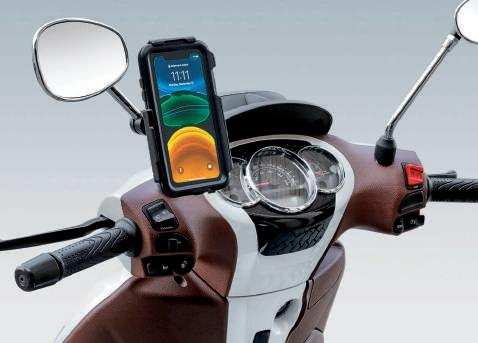 El AMPGO4 puede conectarse a todos los dispositivos Bluetooth como smartphones, GPS y auriculares de cualquier fabricante. También tiene características de confort de la serie MOTION como la superposición de música para entretenimiento, puede conectar las llamadas telefónicas a Intercom y soporta Siri y Google Voice.