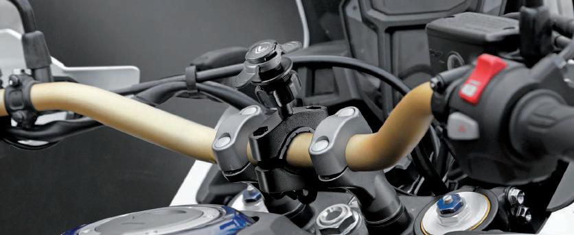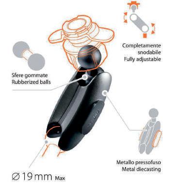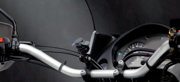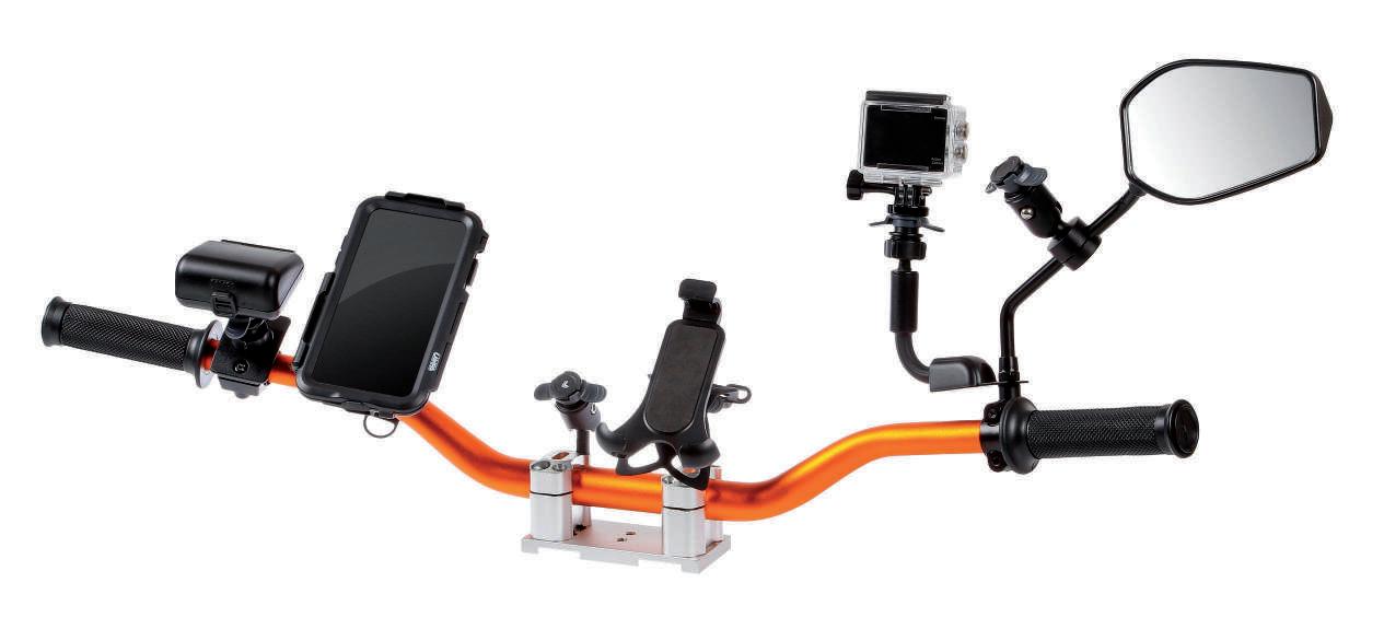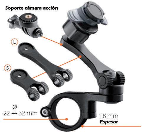 Totalmente ajustable: permite utilizar los accesorios vertical y horizontalmente. Ideal para motos deportivas.