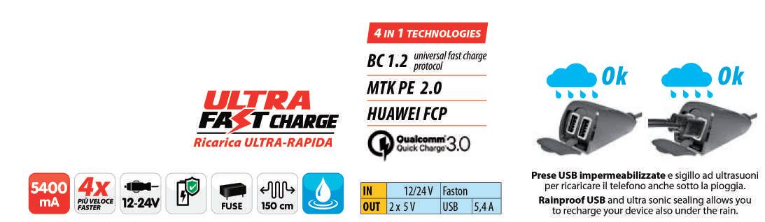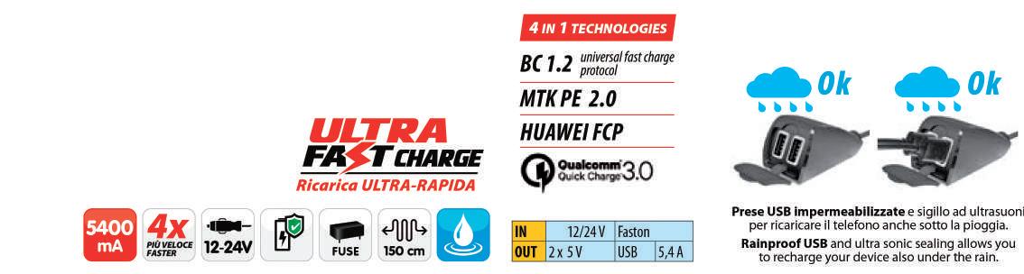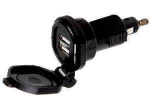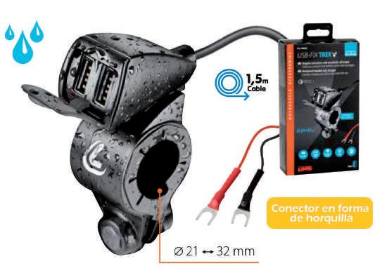 Cargador USB doble 12/24V Impermeable, soporte para manillar.