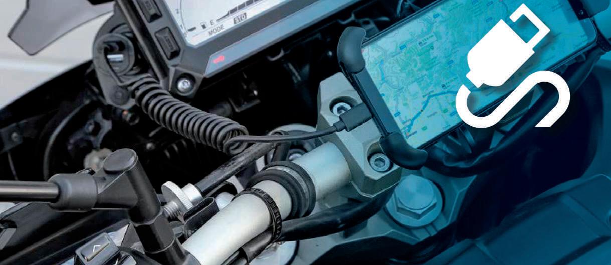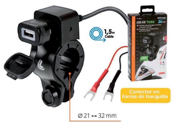 Tubo USB-FIX, cargador USB 12/24V con manillar fijación y conectores de horquilla.