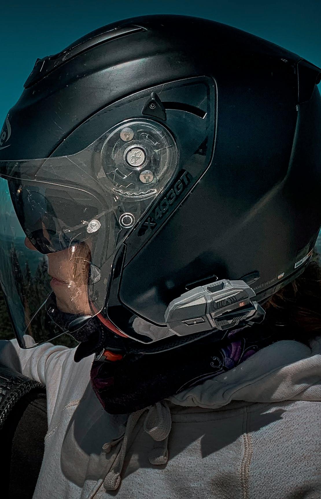 Intercomunicador de grupo con auriculares bluetooth Motion 4 Lite para un máximo de usuarios con un alcance de 1200m por persona.