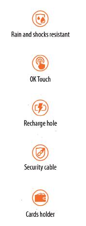 - Totalmente resistente al agua gracias al sellado por ultrasonidos y a la membrana protectora en los puertos USB.