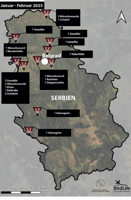 Dem großen Vogelsterben im Nordosten Serbiens fielen Anfang März 2024 rund tausend Vögel zum Opfer. Es ist einer der dramatischsten Fälle von Vogelvergiftungen in Europa – doch leider keine Ausnahme. Anfang 2025 suchte erneut eine Vergiftungswelle den Balkanstaat heim. Diesmal fielen neben Rabenvögeln auch viele Greifvögel dem Gift zum Opfer; allein im Januar und Februar 2025 sind 19 seltene und streng geschützte Greifvögel in Serbien ums Leben gekommen.