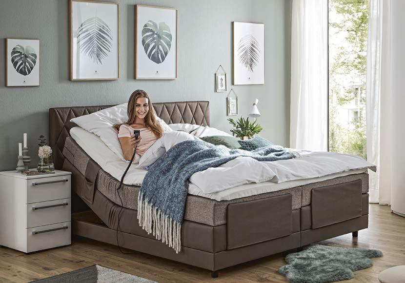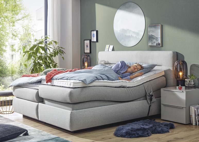 Fußvarianten, ein Schwebesockel und eine große Auswahl an Bezugsstoffen und Farben sind erhältlich. Auch optisch hast Du volle Kontrolle über Dein persönliches Traumbett. Den letzten Schliff gibst Du Deinem Bett mit dem optionalen Zubehör wie LED-Leseleuchten, Sensor-LED-Licht, Anti-RutschBeschichtung und Box-Hussen.