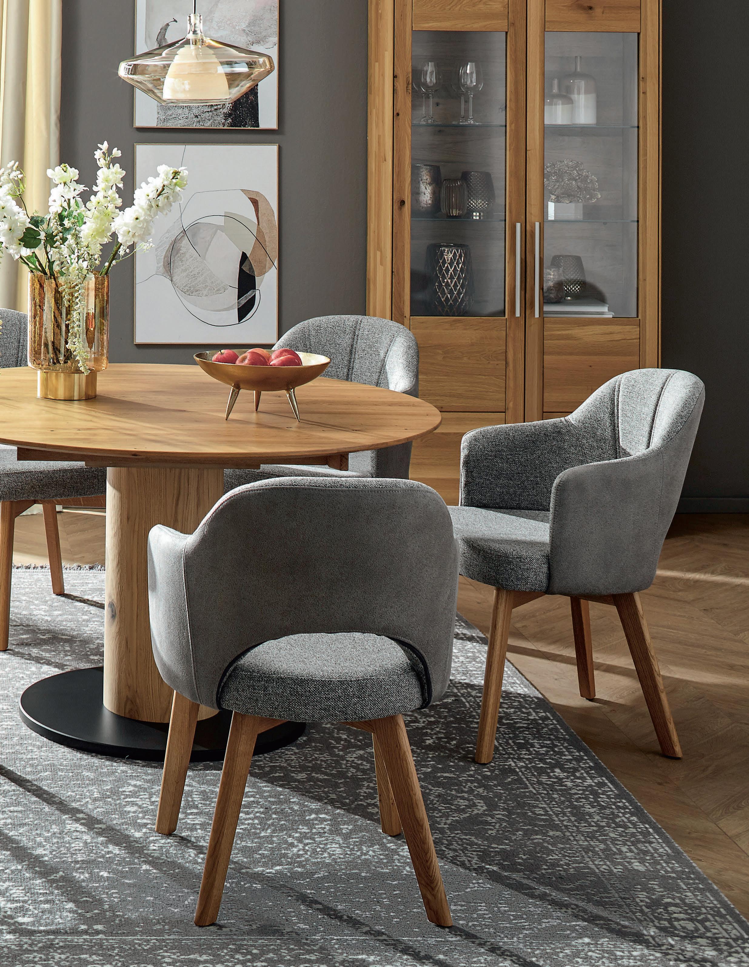 02 Global Wohnen 5000 Armlehnstuhl 5152, Rücken mit Aussparung und markanter Steppung in BiColor-Bezug, innen: Stoff Fiesta hellgrau, 78 % Polyester, 22 % Rayon, außen: Mikrofaser schlamm, 100 % Polyester, 4-Fuß-Gestell Wildeiche massiv, BHT ca. 50 × 92 × 54 cm, je 298,–*
