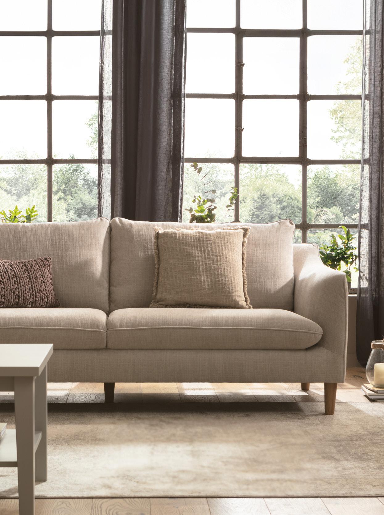 Die weiche, harmonische Linienführung des Burnley Sofas lädt ein, sich zurückzulehnen und die Sinne zu beflügeln. Seine natürliche Cosyness ist beim ersten Anblick sichtbar und beim ersten Kontakt auch spürbar. Das Burnley Gestell ist aus Massivholz, die Sitzkissen angenehm fest, immer in einer Farbe mit Korpus, Sitz und Rückenkissen und mit Keder. Sowohl in den Stoffausführungen, wie auch bei den Ledervarianten. Auf Wunsch gibt es Burnley auch mit kleinem Dekokissen.
