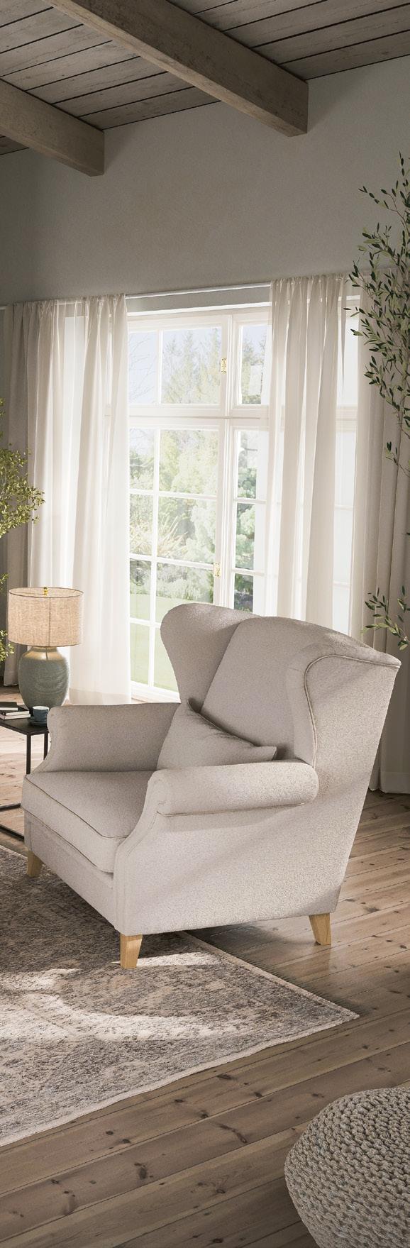 01 | LEBENSART Mapleton Sofa, Bezug: Terrannova 07 beige (100 % Polyester), Keder beige, Sitzqualität: Kaltschaum mit Schaumstoffflocken, Holzfuß gedrechselt natur geölt, BHT ca. 230x98x118 cm, 2.299,–*, ohne Deko 02 | LEBENSART Mapleton Hocker, Bezug: Terrannova 07 beige (100 % Polyester), Keder beige, Sitzqualität: Kaltschaum mit Schaumstoffflocken, Holzfuß natur geölt, BHT ca. 80x50x80 cm, 349,–*, ohne Deko 03 | LEBENSART Mapleton Ohrensessel, Bezug: Terrannova 07 beige (100 % Polyester), Keder beige, Sitzqualität: Kaltschaum mit Schaumstoffflocken, Holzfuß natur geölt, BHT ca. 112x108x112 cm, 999,–*, ohne Deko 04 | LEBENSART Litchfield Konsole Oak, Korpus und Front: Pinie und MDF weiß lackiert, antique, Kranz: Eiche massiv grau geölt, Griffe schwarz, BHT ca. 130x90x40 cm, 1.299,–*, ohne Deko
