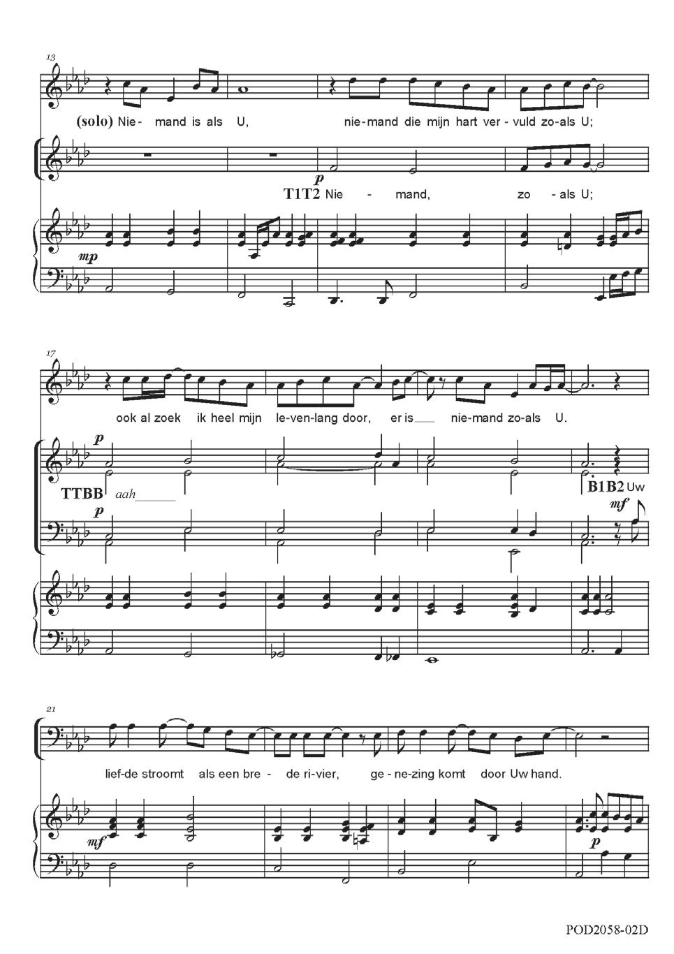 Orig. title: There is none like You by Lenny LeBlanc Ned. tekst: Sylvia Bronsveld & Mireille Schaart © Integrity’s Hosanna! Music (adm. by Smallstonemediasongs.com)