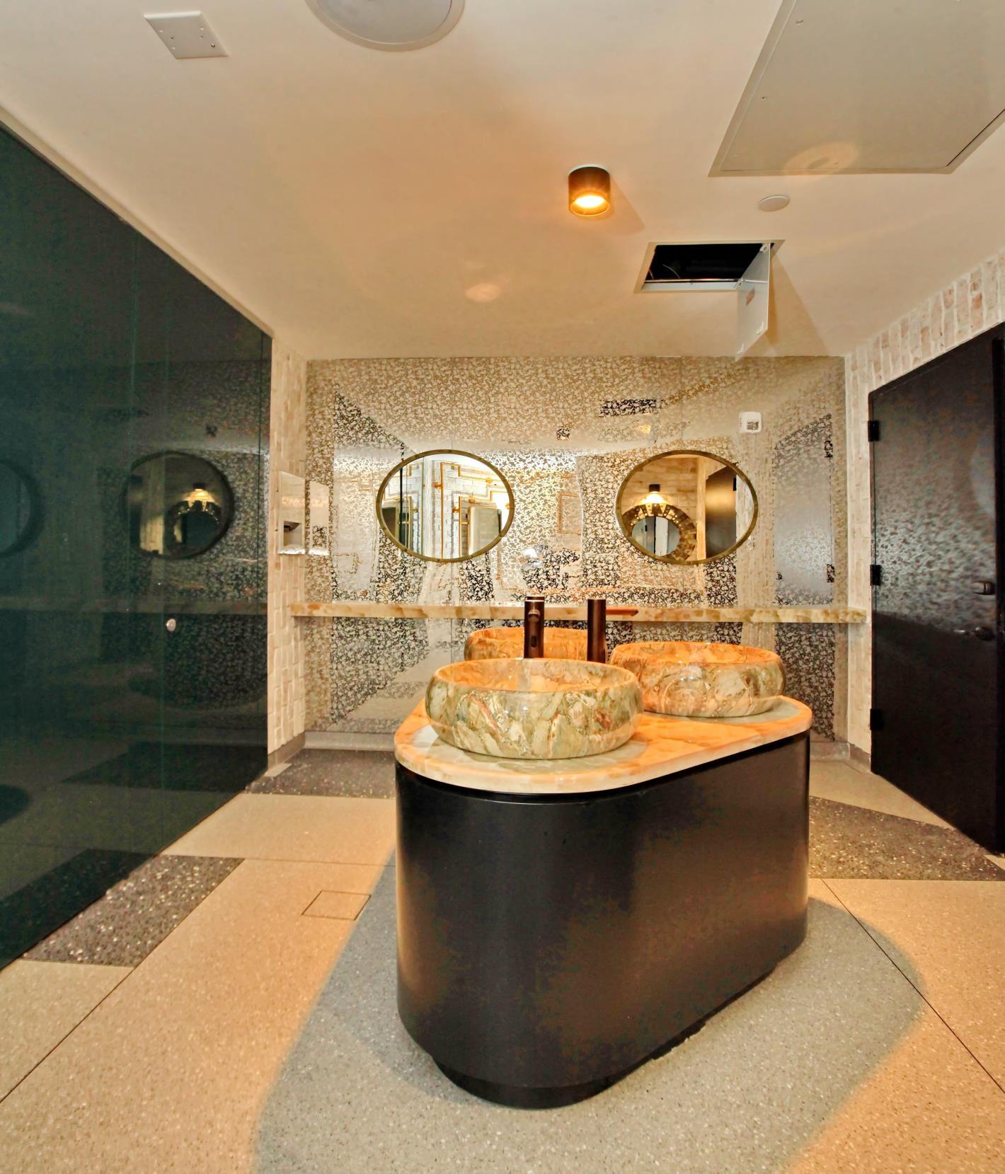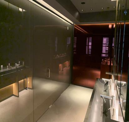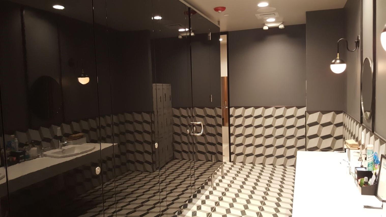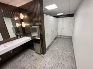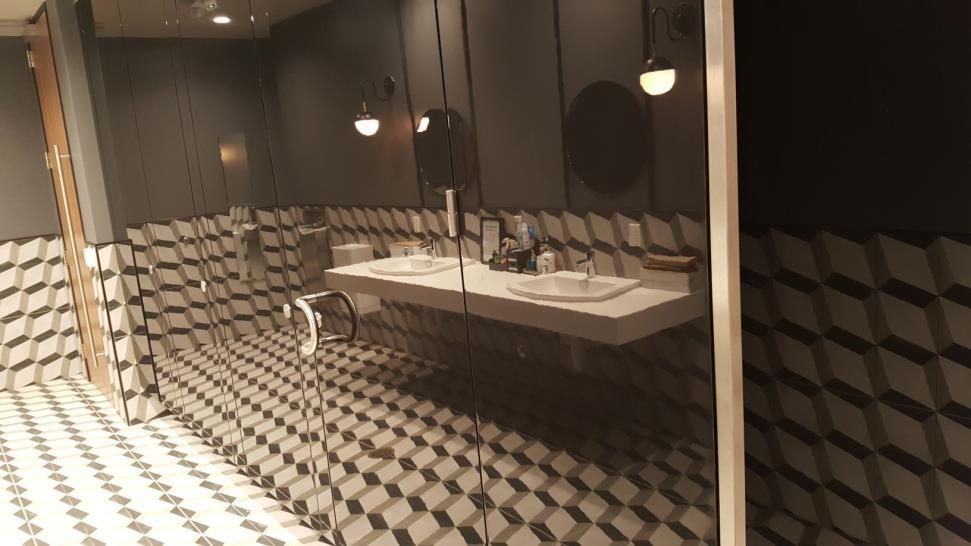 • Preferences include concealed behind the mirror, sensor taps, foam soap cartridges (recyclable), automatic hand dryers, and paper towel dispensers.