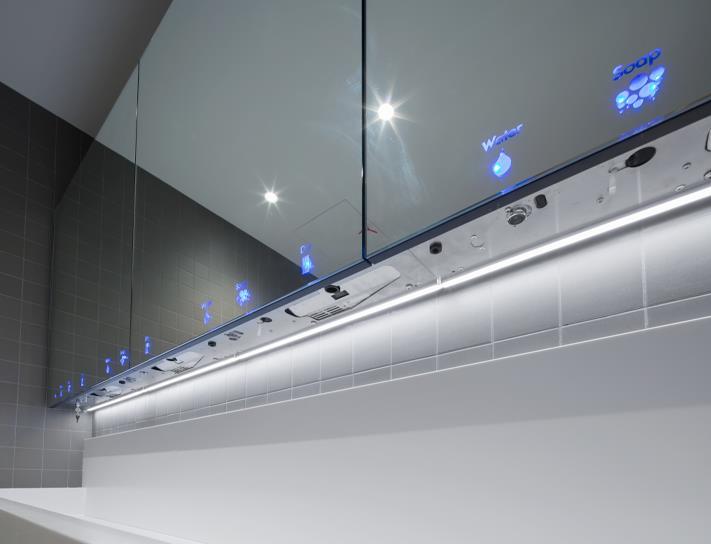 • Complete with infrared sensor taps, concealed foam soap cartridges, high -speed, low-energy dryers per wash station.