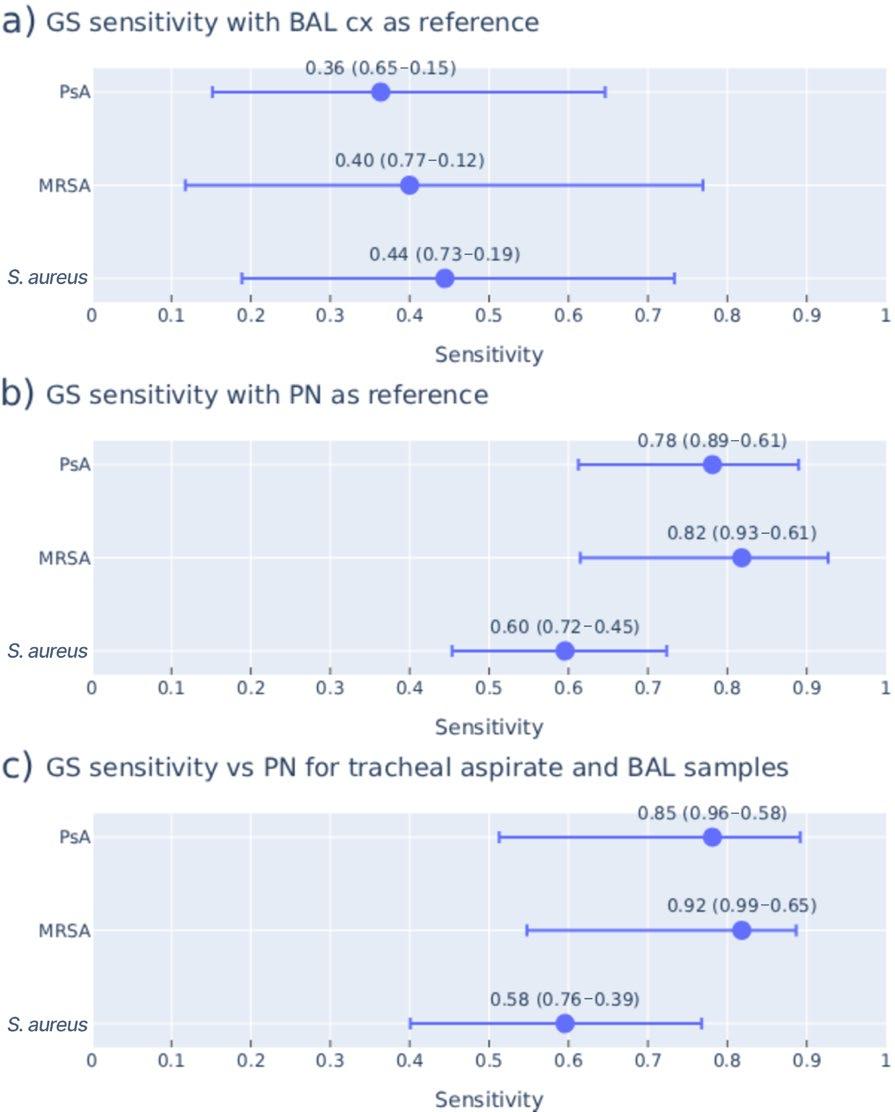 41 Performance of Sputa Gram Stain for the Evaluation of Staphylococcus aureus and Pseudomonas aeruginosa Pneumonia, as Compared to Standard Culture and Multiplex PCR