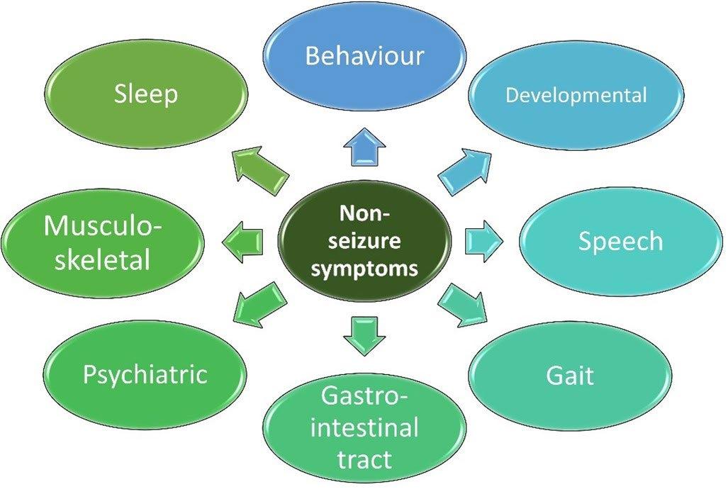 NSS in people with DEEs include those that can affect cognition, behaviour, sleep, motor function, and the gastrointestinal tract (Figure 1).8,26 The overall prevalence of depression and anxiety is also higher in children with DEEs, suggesting common pathogenic mechanics or neural basis.27 Systematic assessment of NSS throughout life shows an increasing neurodevelopmental gap between patients and controls over time, with some NSS persisting and worsening into adulthood (e.g., gait).22,28