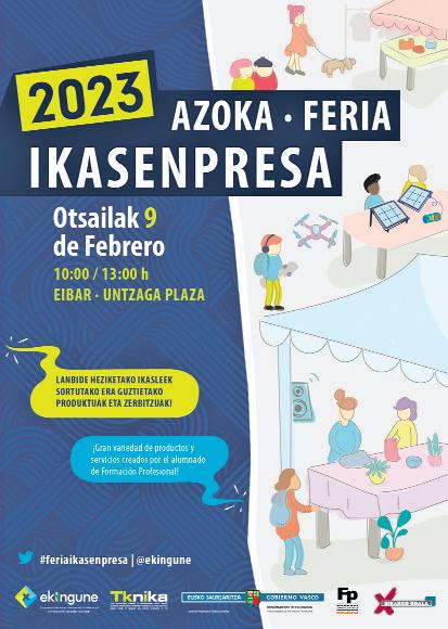 Bi urtez aurrez aurreko ediziorik egin gabe egon ondoren,kultura ekintzailea sustatzeko Ikasenpresa Azokak normaltasuna berreskuratu du berriro pandemiaren ondoren,eta Arabako,Bizkaiko eta Gipuzkoako Lanbide Heziketako 1.800 ikasle inguru bildu ditu.Aurten XII.Ediziora iritsi den azoka otsailaren 9an egin zen Eibarren.Jon Labaka Tknikako (Euskadiko Lanbide Heziketako Ikerketa eta Berrikuntza Aplikatuko Zentroa, Hezkuntza Sailaren baitakoa) zuzendari exekutiboak azokaren irekiera-ekitaldian parte hartu du eta,ondoren,ikasleen postuak bisitatu ditu. Goizean zehar,Untzaga Plazan eta Txantxa Zelain prestatu duren karpetan,Ikasenpresa programaren baitan garatu zituzten produktu eta zerbitzuak erakutsi zituzten.Tknikak antolatzen du urtero azoka,Eibarko Udalaren laguntzarekin. Aurten,azokan erakutsi diren Ikasenpresa proiektuen kopurua 350era iritsi zen.Ekimenean parte hartzen zuten Lanbide Heziketako 50 ikastetxetakoak izan ziren guztiak,askotariko arlo edo sektoreetakoak.Izan ere,Ikasleek aurkezten zituzten negozio-ideiak ikasten ari ziren lanbide-arloekin harreman zuzena izaten zuten. Aurkeztu ziren proiekturik gehienak honako arlo hauetakoak izan ziren: Jarduera fisikoak eta kirolak,Industrialak,Irudi pertsonala,Ostalaritza eta turismoa,Informatika,Diseinua,Gizartearentzako zerbitzuak,Arte grafikoak,Nekazaritza eta arrantza,Informatika eta Zerbitzuak.