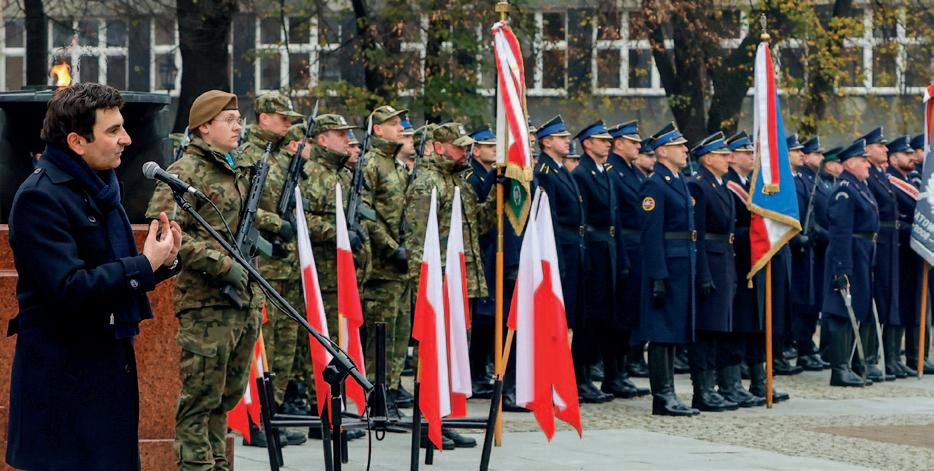 11 listoPada sPod krzyża-Pomnika kwk wuJek é Śląskie Centrum Wolności i Solidarności wraz z Jafi Sport i Polską Grupą Górniczą sa zorganizowali iii Bieg Niepodległości im. Dziewięciu z Wujka. Gospodarzem wydarzenia był Robert Ciupa – dyrektora ścwis. Przed startem uczestnicy biegu złożyli kwiaty u stóp Krzyża-Pomnika Poległych Górników. W rywalizacji uczestniczyła ok. tysiącosobowa grupa zawodników – w tym: Joanna Bojczuk i Leszek Pietraszek – członkowie Zarządu Województwa Śląskiego. Pierwsze miejsca zajęli Mateusz Mrówka i Sylwia Indeka. , katowice { 11 listopada 2024 Ω galeRia zdjęć: https://tinyurl.com/prwwfpps