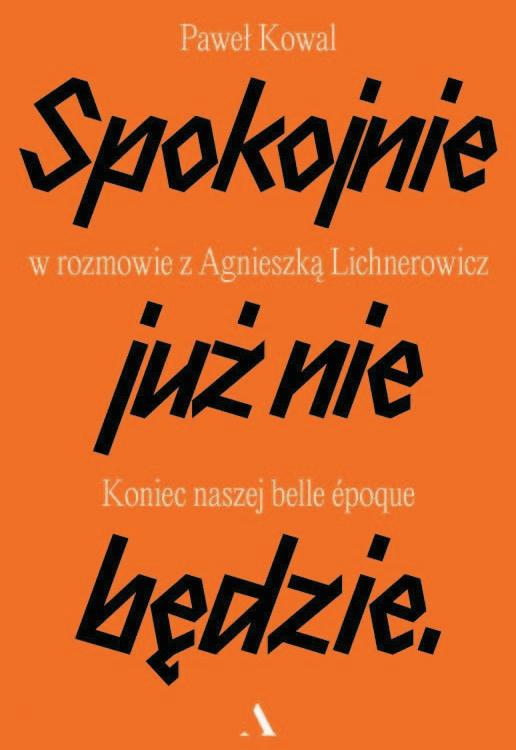 Książka »Spokojnie, już nie będzie. Koniec naszej belle époque« podejmuje próbę zrozumienia świata po 24 lutego 2022 r. – dacie, która symbolicznie zakończyła okres względnego spokoju w Europie. Forma książki to rozbudowany wywiad, w którym aGnieSzka lichnerowicz, doświadczona dziennikarka Radia Tok FM, zadaje pytania Pawłowi kowalowi – profesorowi Polskiej Akademii Nauk, byłemu posłowi i ekspertowi w dziedzinie polityki wschodniej.