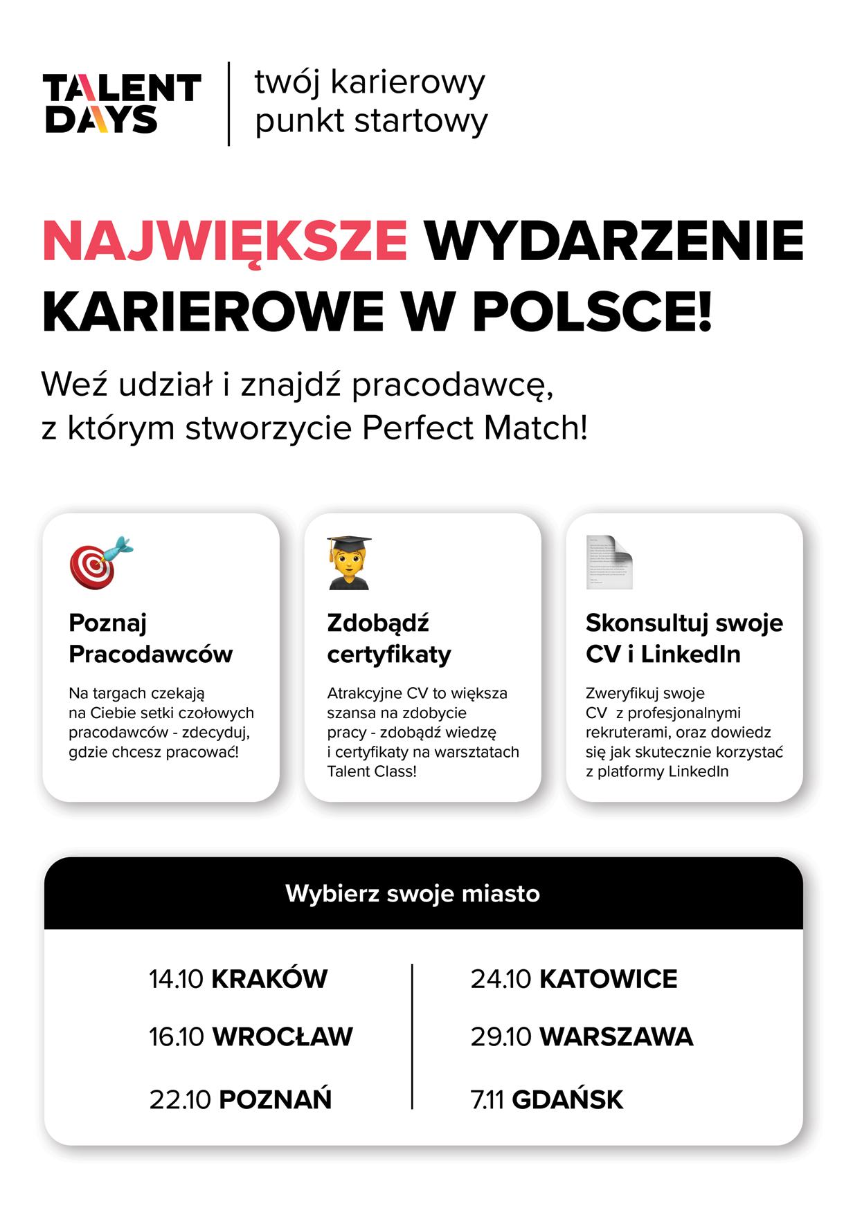 Jeśli jesteś studentem lub absolwentem powyższych kierunków, dołącz do nas! Oferujemy staże, praktyki i zatrudnienie w oparciu o