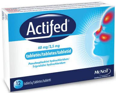 paracetamolio, 30 mg pseudoefedrino sulfato ir 15 mg dekstrometorfano hidrobromido. Indikacijos: