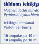 B6); vienoje 10 ml ampulėje yra 186 mg magnio