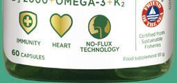 15 µg, 300 % RMV (2 kapsulėse). Omega-3 riebalų rūgštis DHR padeda palaikyti normalią smegenų funkciją ir išsaugoti normalų regėjimą. DHR ir EPR padeda palaikyti normalią širdies veiklą. Teigiamas poveikis regėjimui ir smegenų funkcijai pasireiškia suvartojant