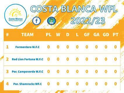 The opening games will see Formentera WFC host league new boys Red Lions of Fortuna, while current league champions Portobello Campoverde play a ‘local derby’ against the other new boys Portobello Shamrocks WFC. Dates to be announced.